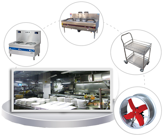 公司主要產品包括各類廚房設備整體配套工程,燃氣、燃油爐,不銹鋼操作臺、貨架,運水煙罩、抽煙、排煙系統等環保型工程設備。